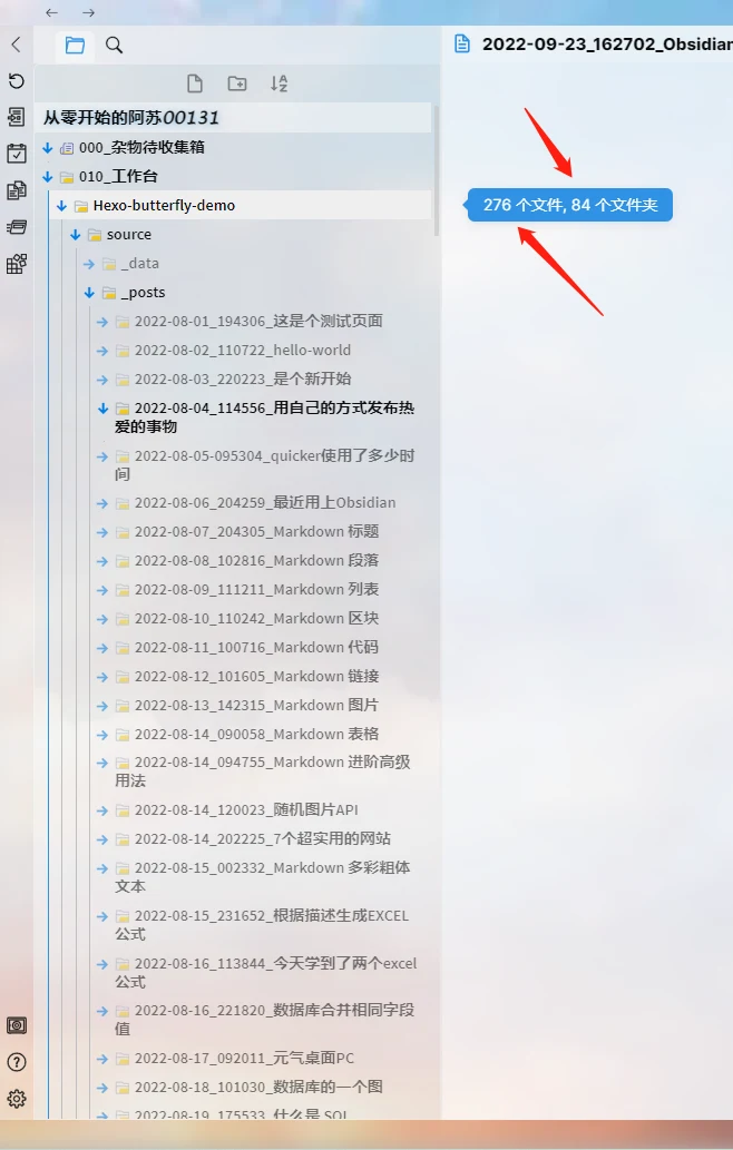 原来是这样的真的细水长流,文件夹和md笔记随着时间的增加而增加,但这个文件夹要放到一块才能统计起来,这就不得不放在一个文件夹了,可是一开始还好,但写到列表超出显示屏人就不好了,鼠标滚动起来可以,就是有点废手,折叠起来,整个遮挡的兜折叠了(文件就肯定是在这个文件夹bb一下)这还怎么找,有人说最近的记录,如果是当天点里其他的md笔记多起来就看不见了,难受,,还好我笔记是按照时间排列的,,,这就好办了,运行下动作就好了,,,