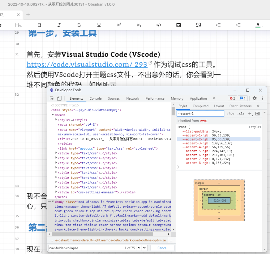 现在,打开Obsidian,按下“CTRL+SHIFT+I”,唤出开发者工具,如下图