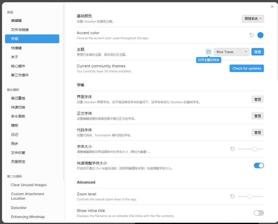 Obsidian设置里“外观”->“css片段”,点击右侧红框里这个文件夹图标,会打开片段文件夹