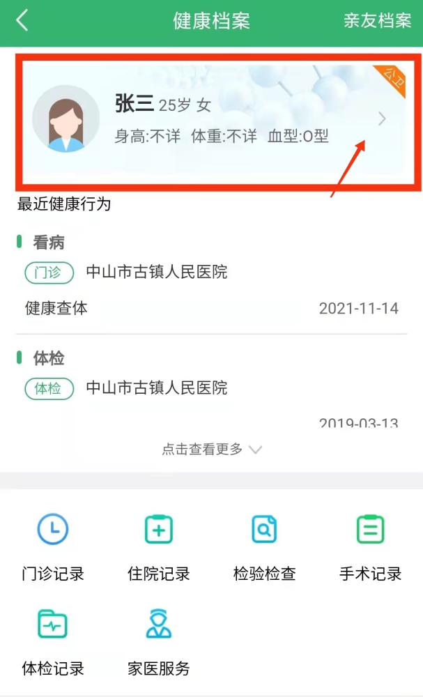 第三步:点击“我的档案”进行个人记录查询;